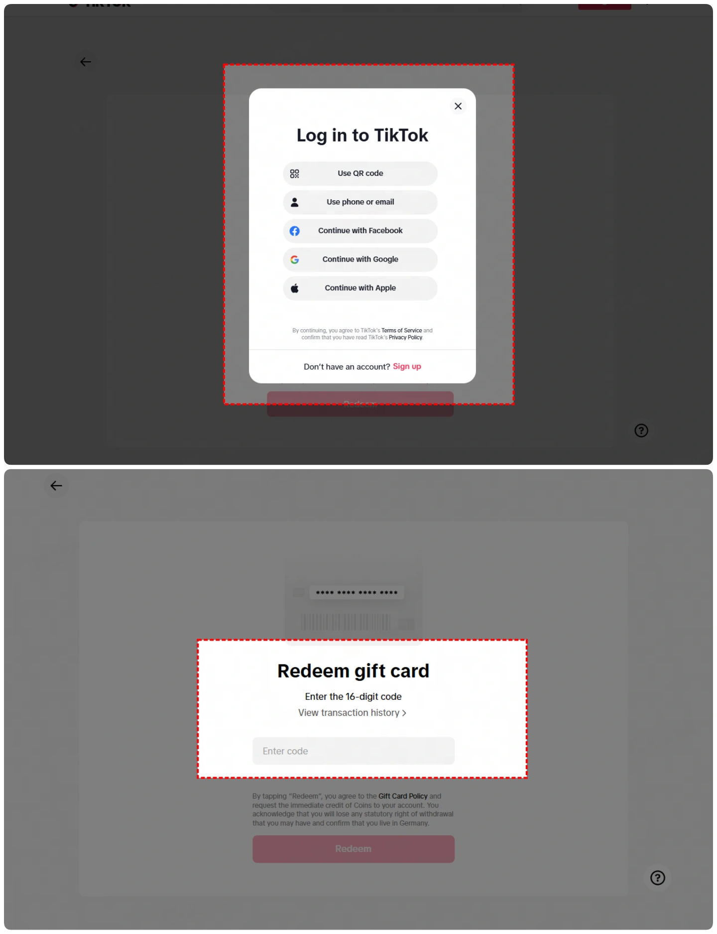 1. Ve a https://www.tiktok.com/coin/redeem.